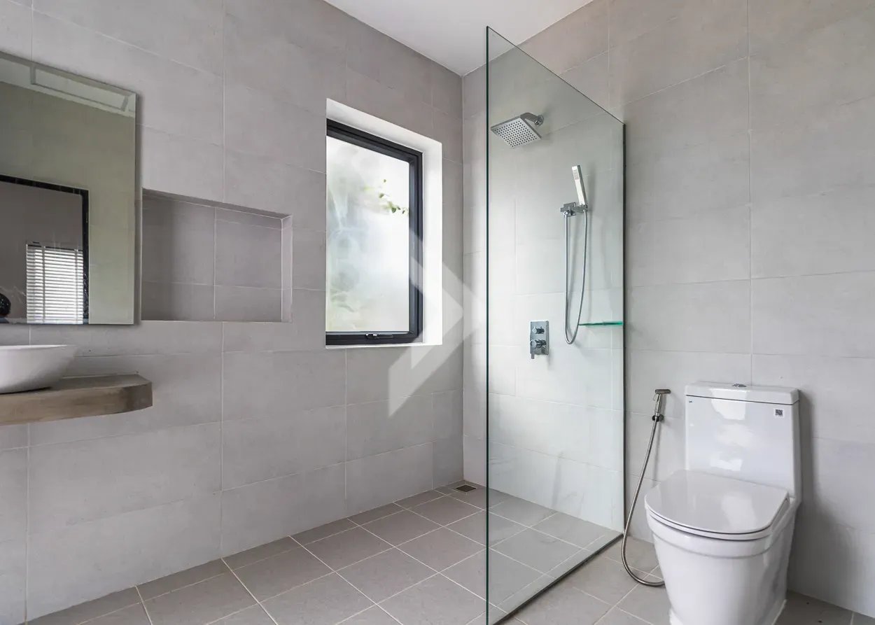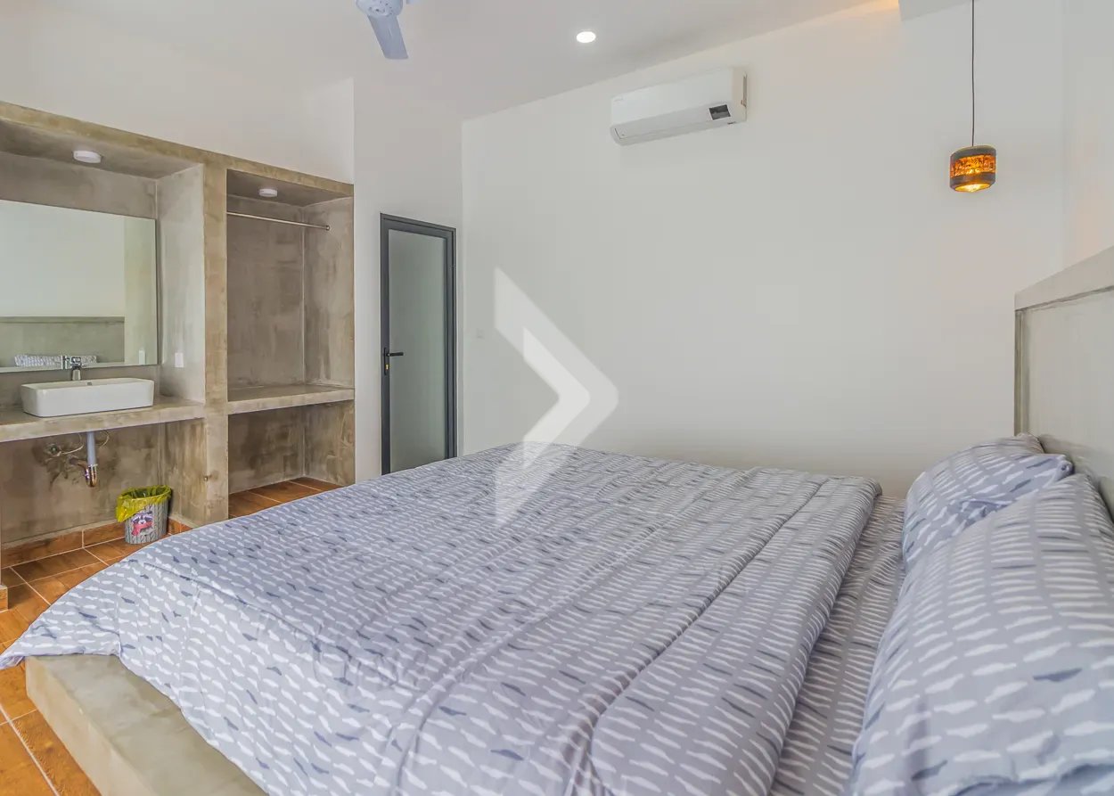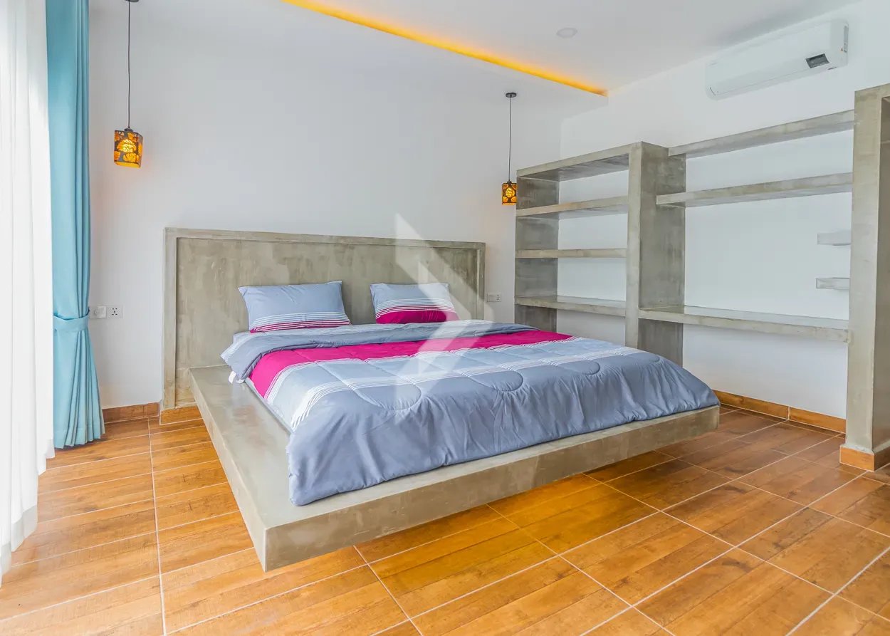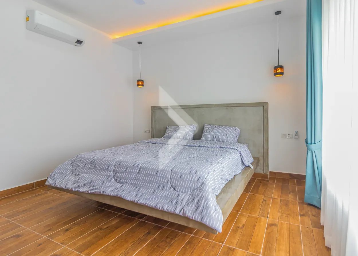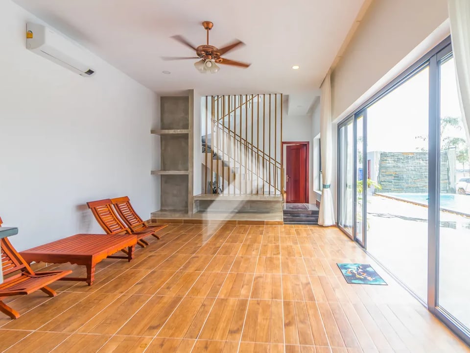 The villa boasts four generously sized bedrooms, each elegantly furnished with comfortable beds, stylish decor, and ample storage solutions. All bedrooms feature air conditioning to ensure a comfortable stay amidst Cambodia's tropical climate. Large windows throughout the villa allow natural light to illuminate the interiors, creating a bright and inviting atmosphere.