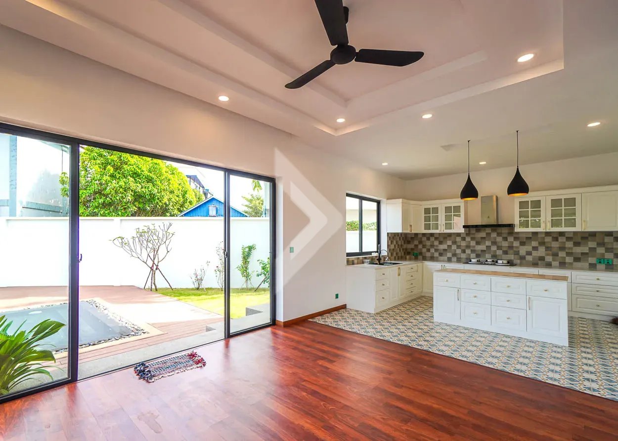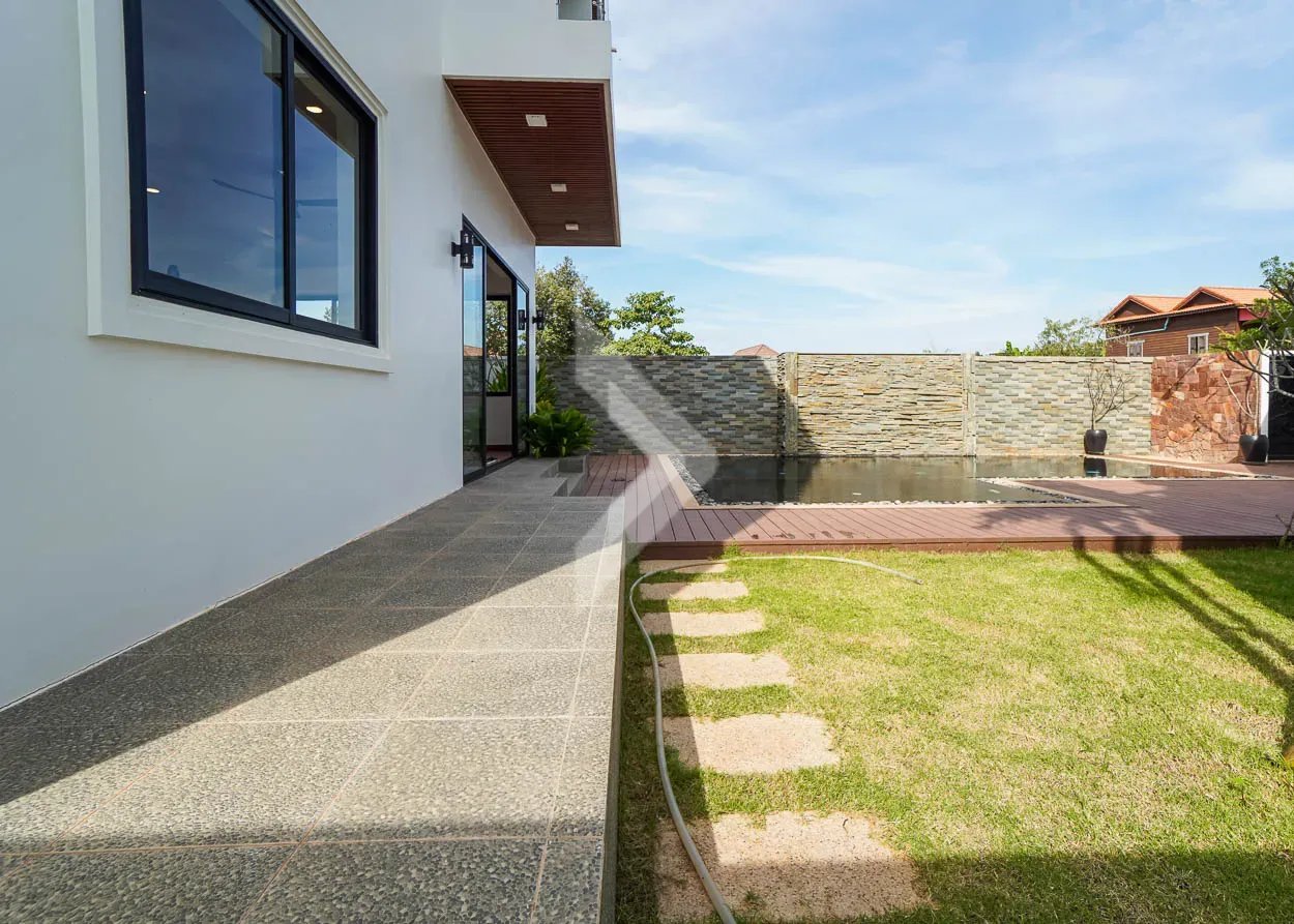This Beautiful Villa has Four (4) Bedrooms and Five (5) Bathrooms, two (2) Big Space of Living rooms per each floor, Kitchen and Dining area is located at the Back of Villa with Swimming Pool View.
